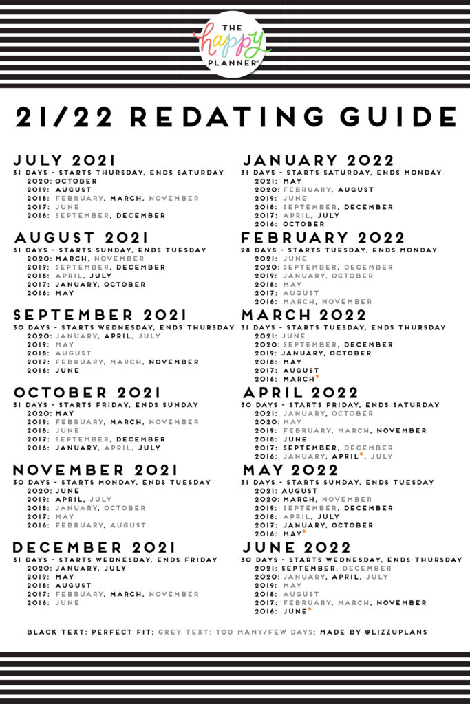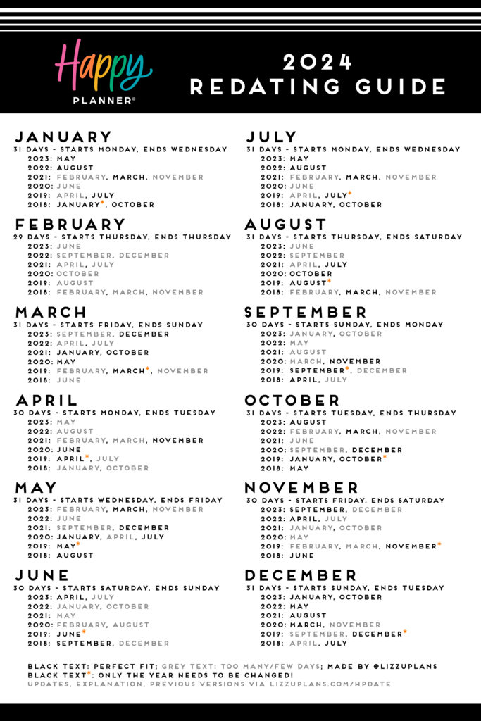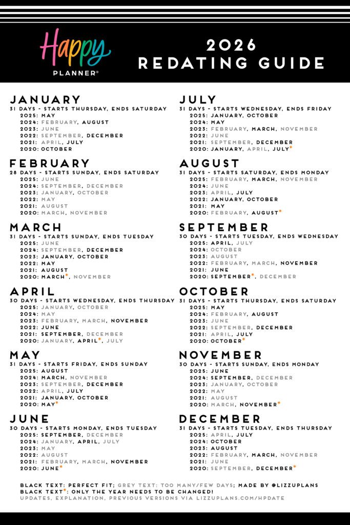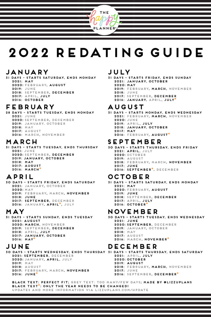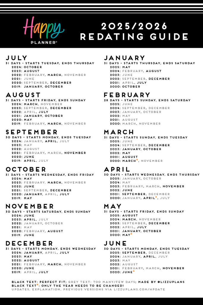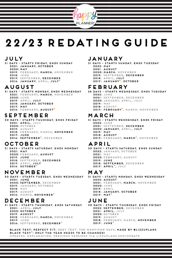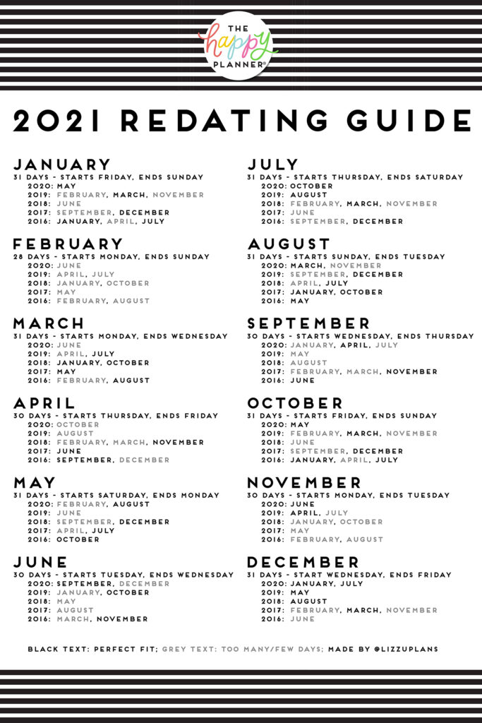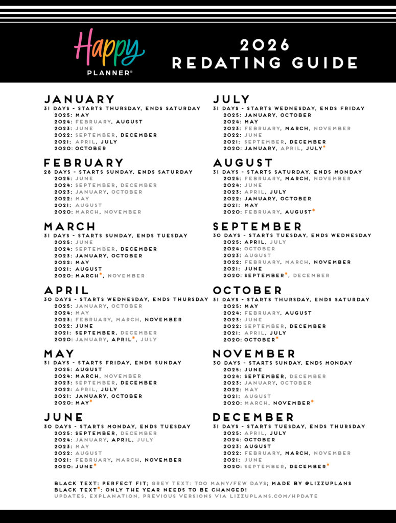 This redating guide will help you redate months from your old planner(s) to work for the new year!